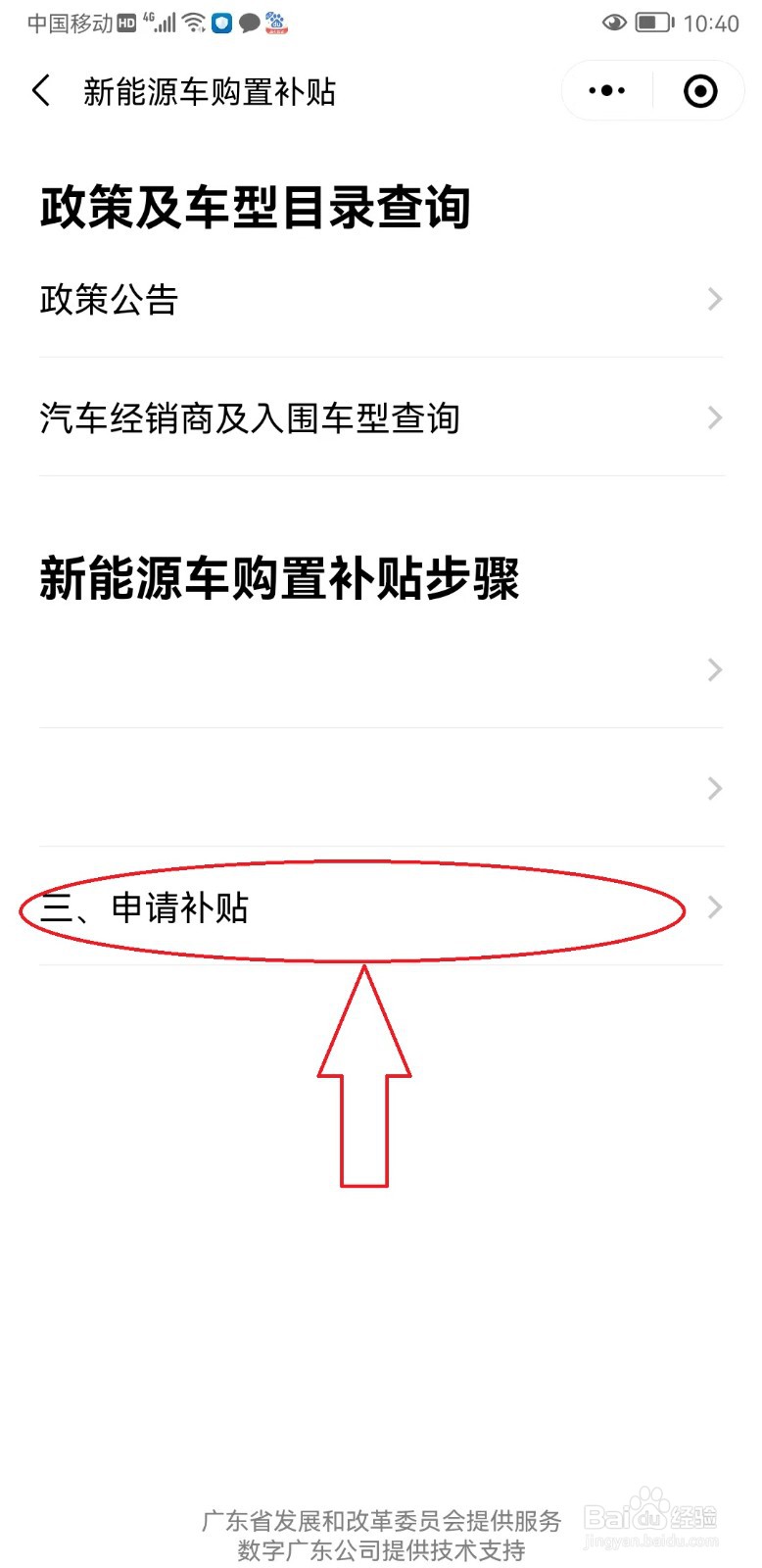 打开”新能源车补贴注游“专题:在”粤省事“小程序的主页,点击”新能源车补贴“图标侨五获。