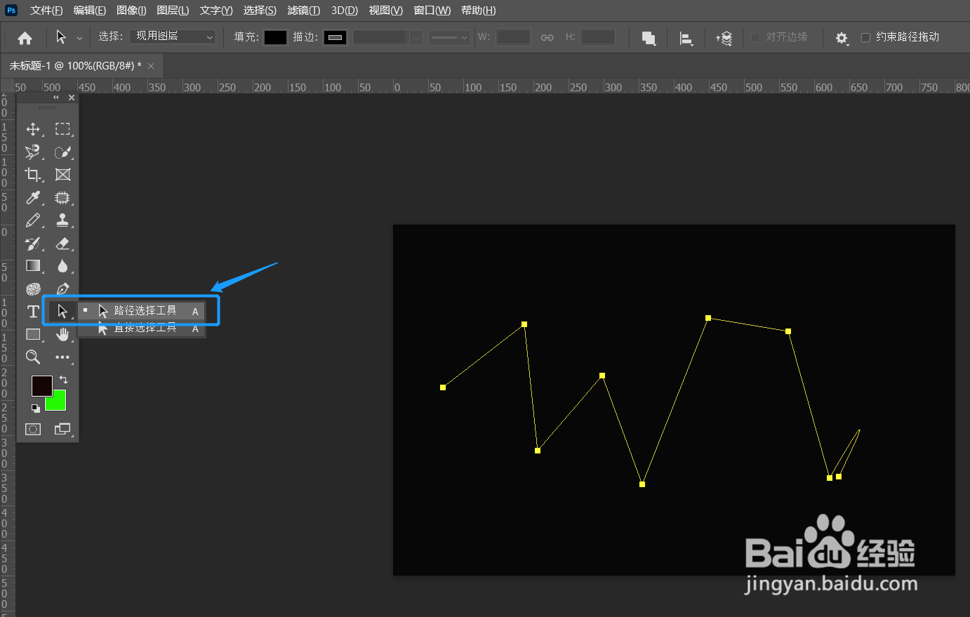 然后:选择工具栏中的【路径选择工具】,点击需要移动的路径。