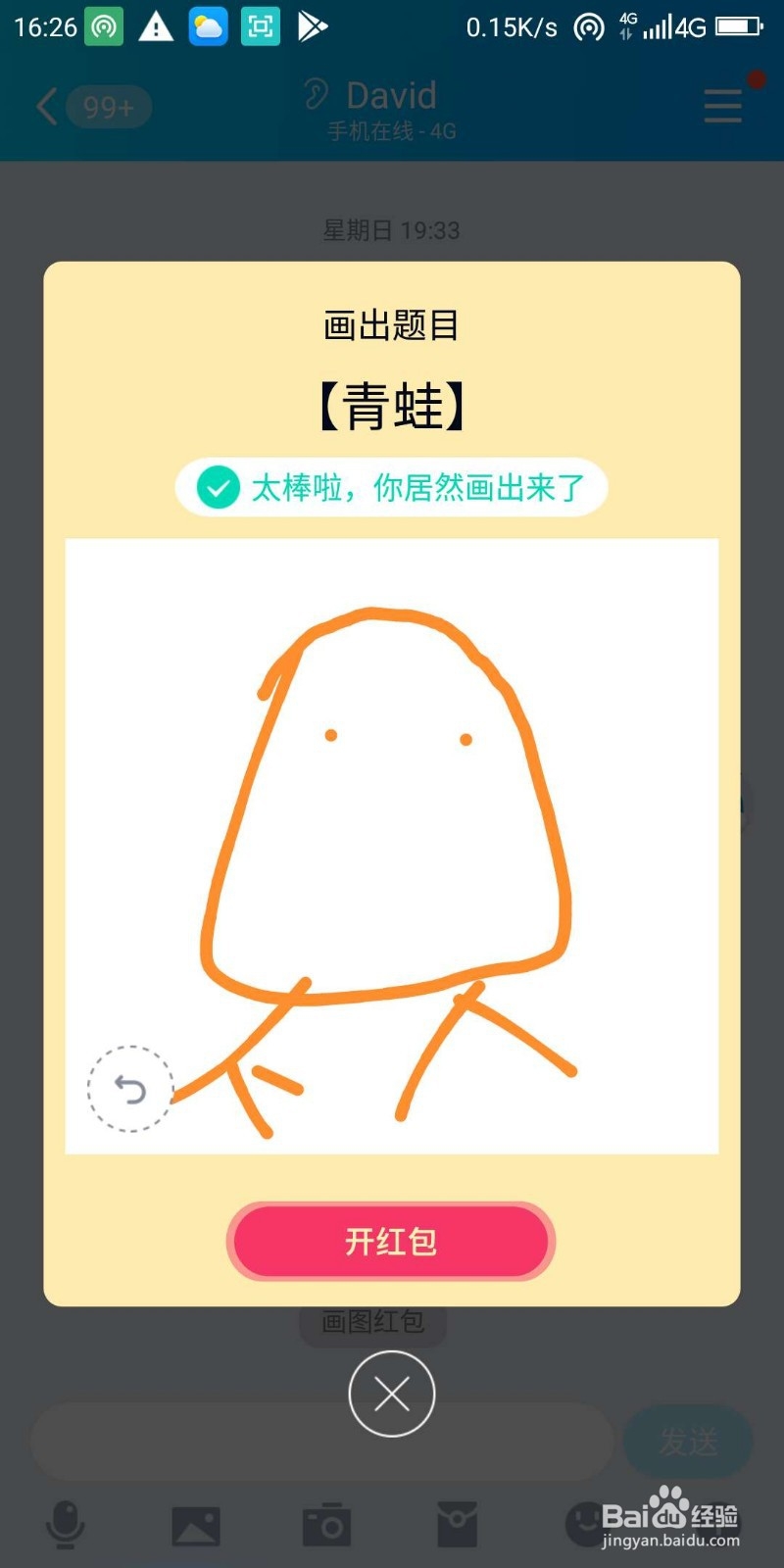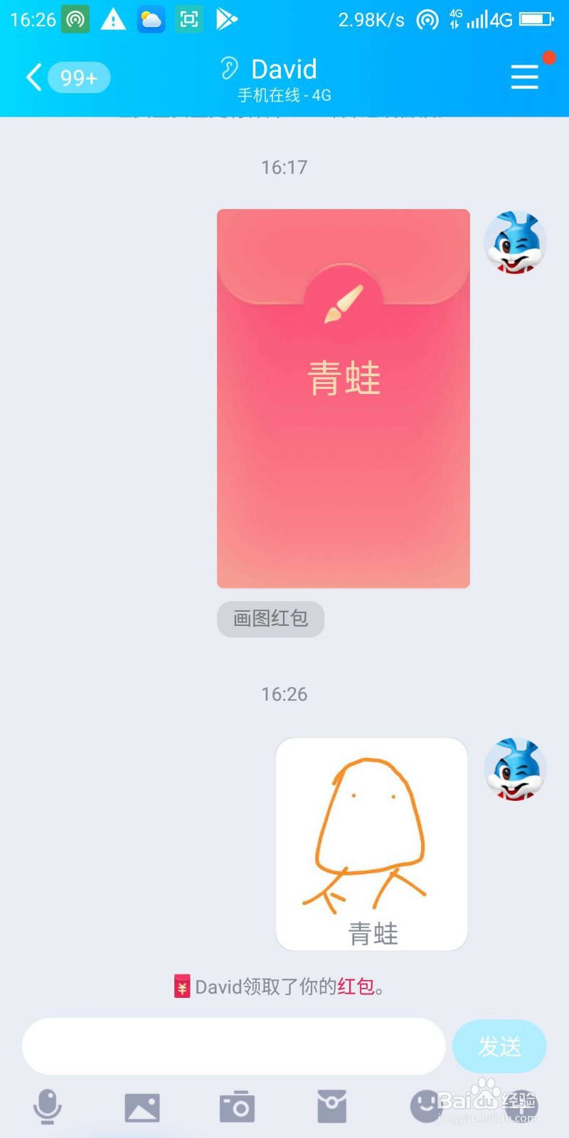 最后返回聊天界面,可以看到自己画出的青蛙的图案了