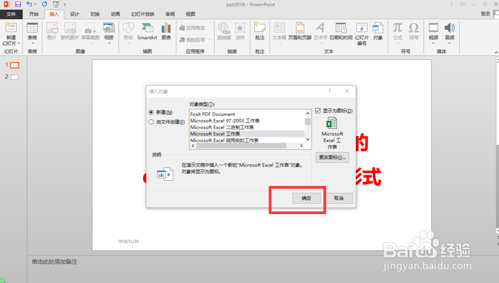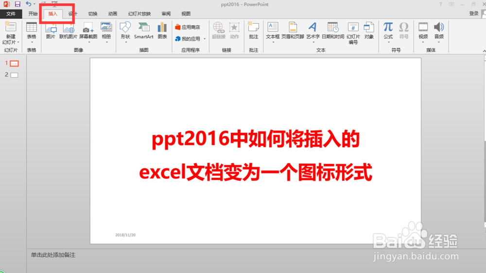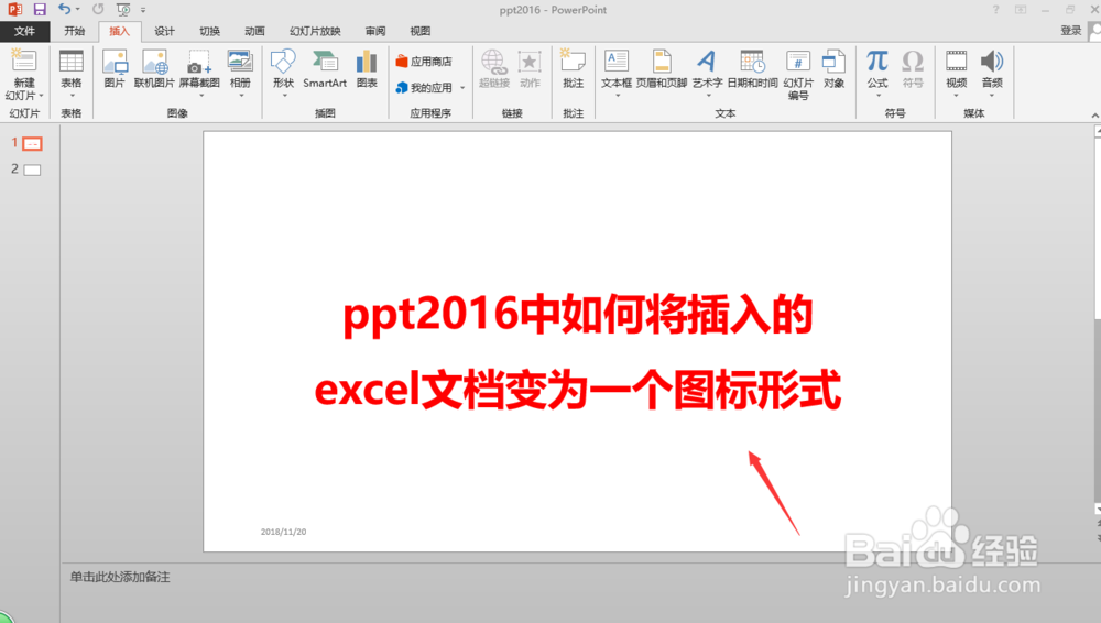 ppt2016中如何将插入的excel变为一个图标形式