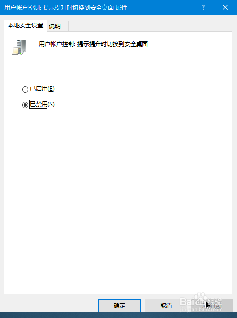 双击打开:用户账户控制:提示提升时切换到安全桌面