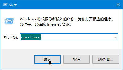 在打开的运行窗口中输入:gpedit.msc点击【确定】按钮或者直接按回车键。
