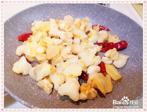 起油锅,葱姜入锅煸香后豆瓣酱入锅炒,北蛾螺入锅炒。