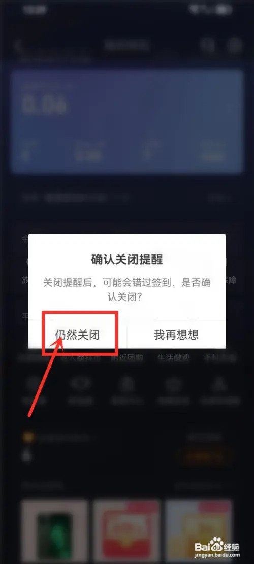 点击“仍然关闭”选项,即可关闭抖音钱包签到通知。