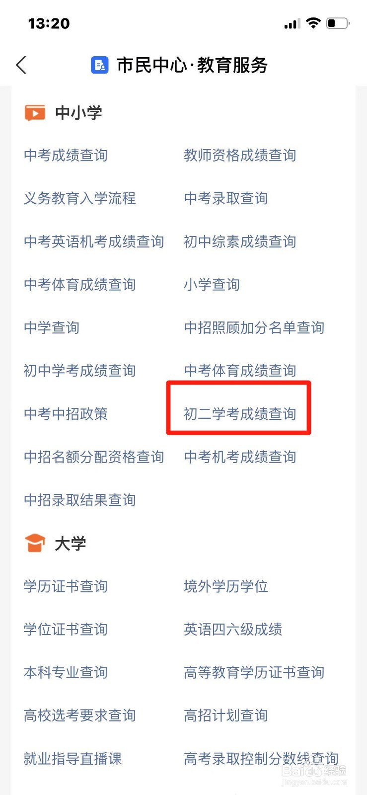 第三步:最后在教育服务页面点击【初二学考成绩查询】即可。