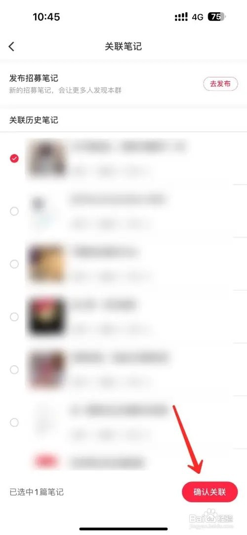 最后在关联笔记的内容里,选择关联的内容后再点击确认关联。