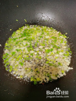 再次倒入油,锅中油热,下入葱花和蒜末,五香粉。