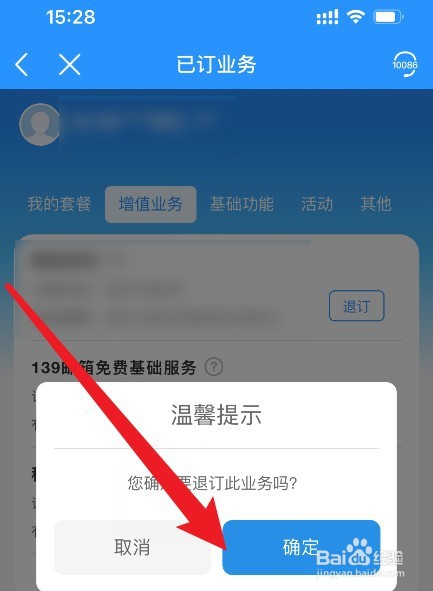 最后,如下,在温馨提示页面,点击【确定】即可取消业务了