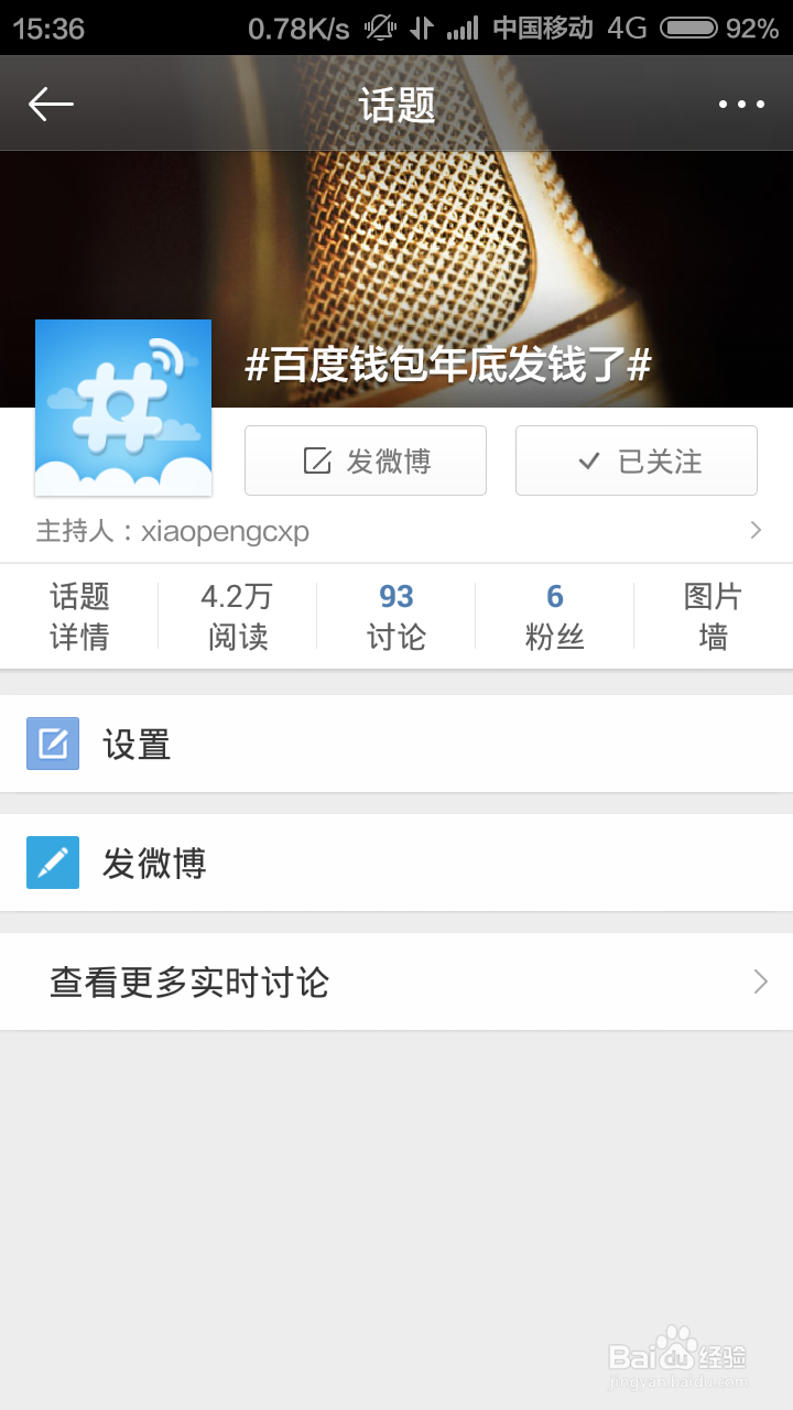 首先,请大家打开新浪微博客户端,点击含有##符号的微博,##中包含的内容就是话题啦。