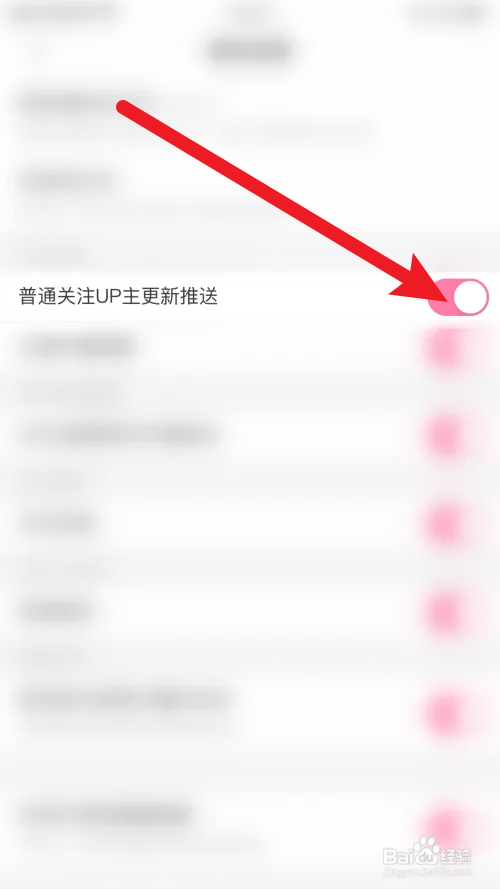 最后我们打开普通关注up更新推送选项右侧的开关即可。