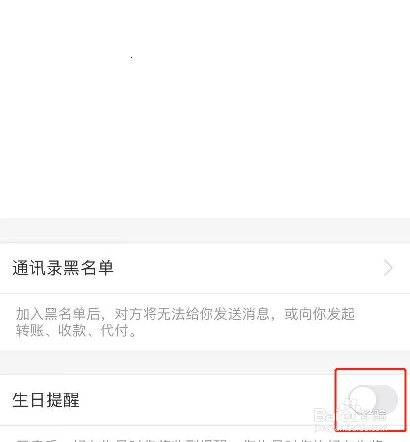 在常用隐私设置界面点击生日提醒按钮打开即可。