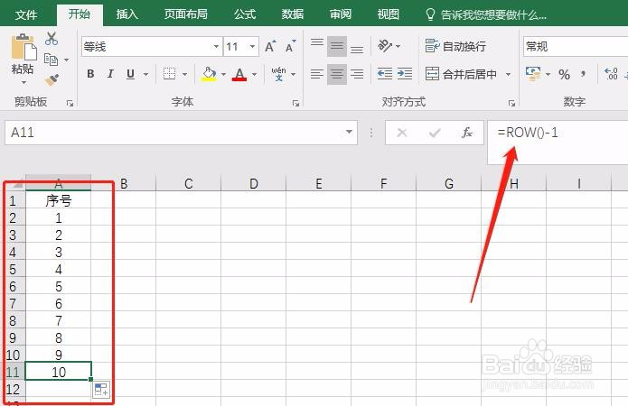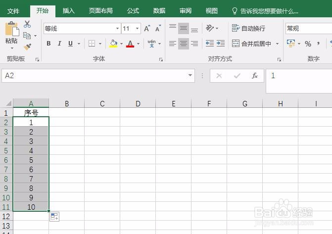 此时,弹窗会自动关闭,同时A2-A11单元格自动填充了序列号1-10。