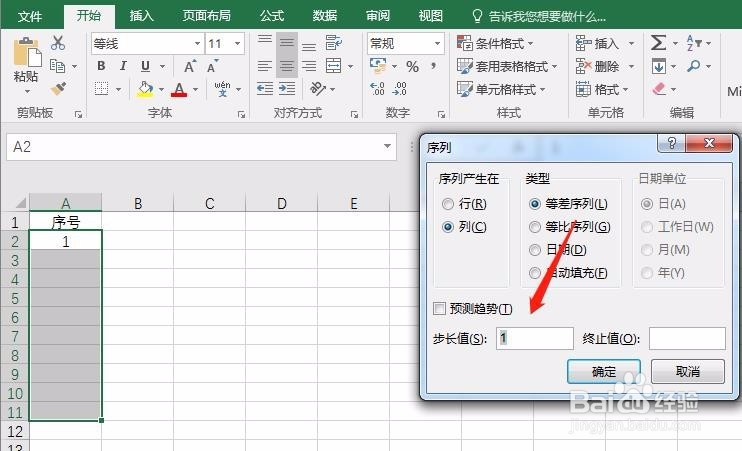 跳转至序列设置的页面,在步长值处输入1,点击确定。