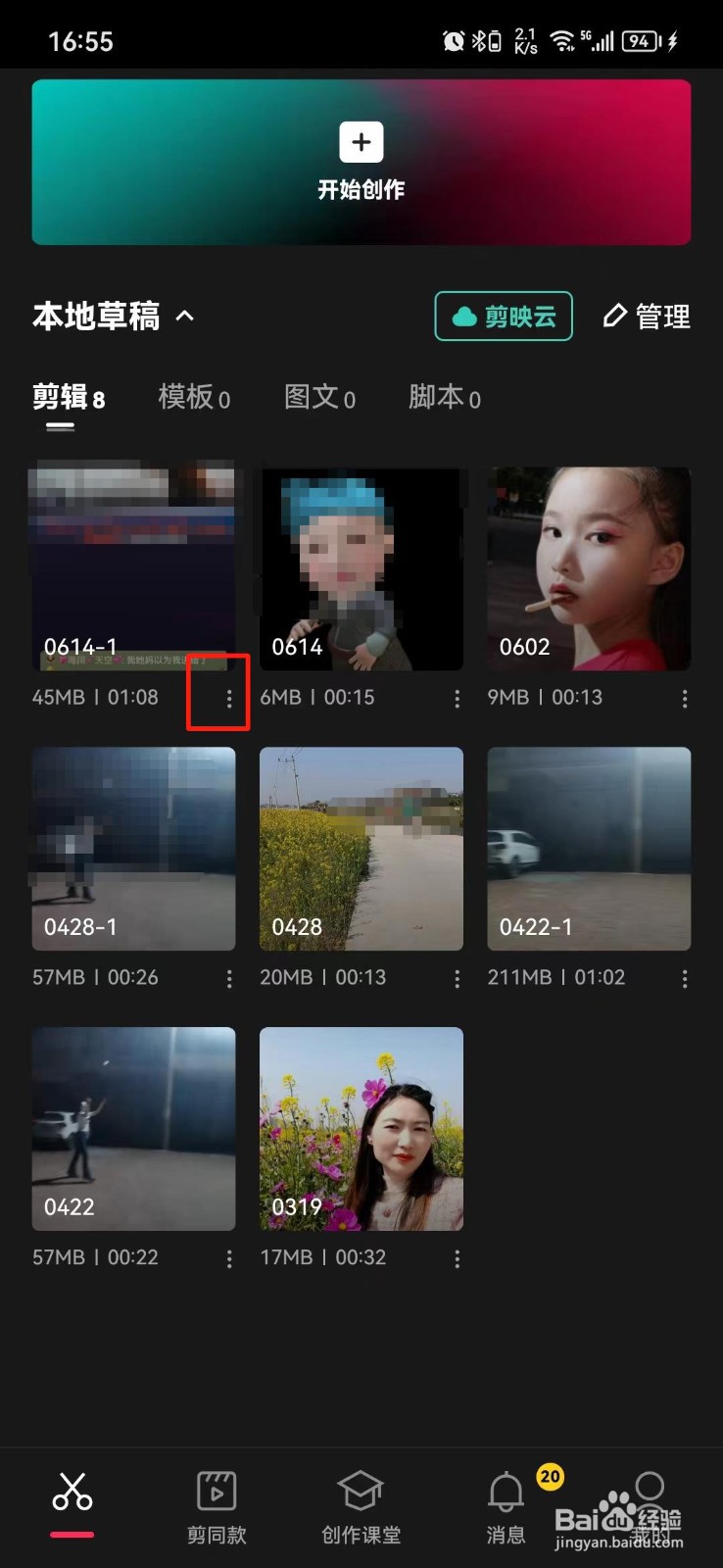 第一步:打开剪映软件,要删除的草稿下点击三个点图标