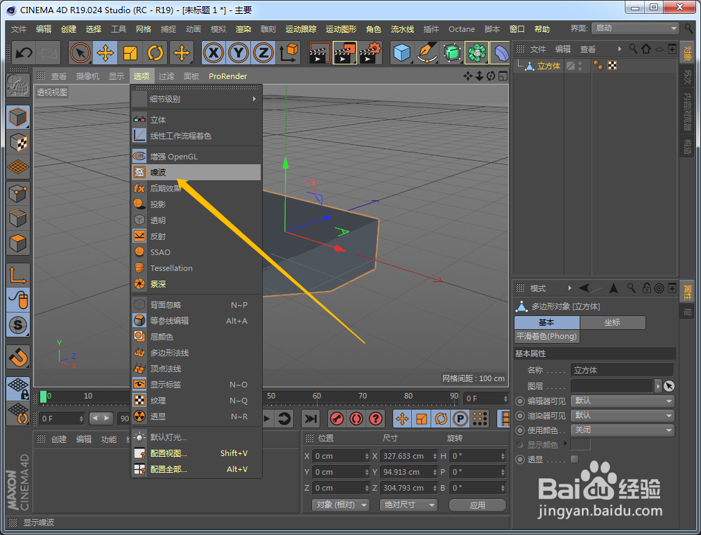 用户使用C4D软件时,可以在上方菜单栏选项里面找到噪波。下面就是一些操作流程: