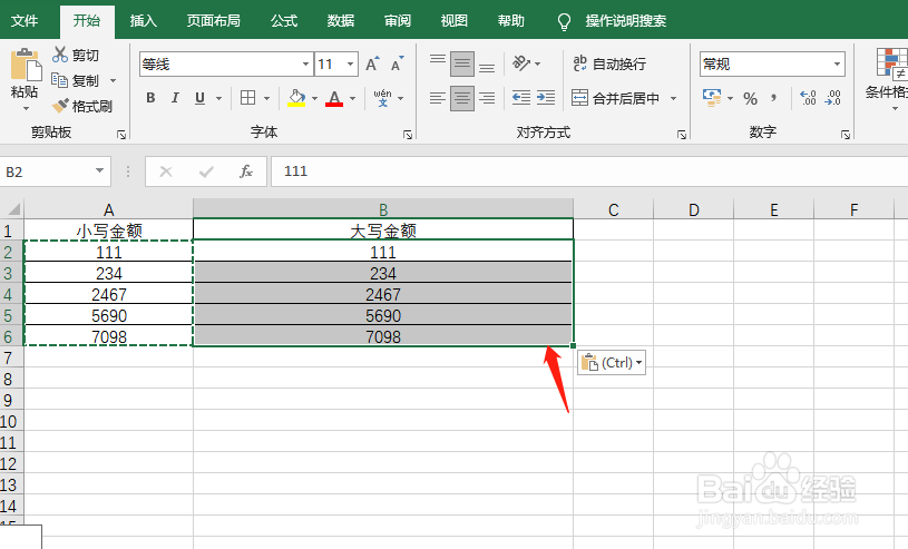 下面教大家如何在Excel中将小写金额变成大写金额;