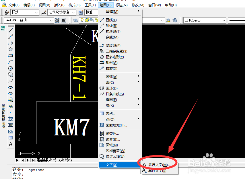 在CAD菜单栏【文字】下拉菜单中选择【多行文字】并点击打开