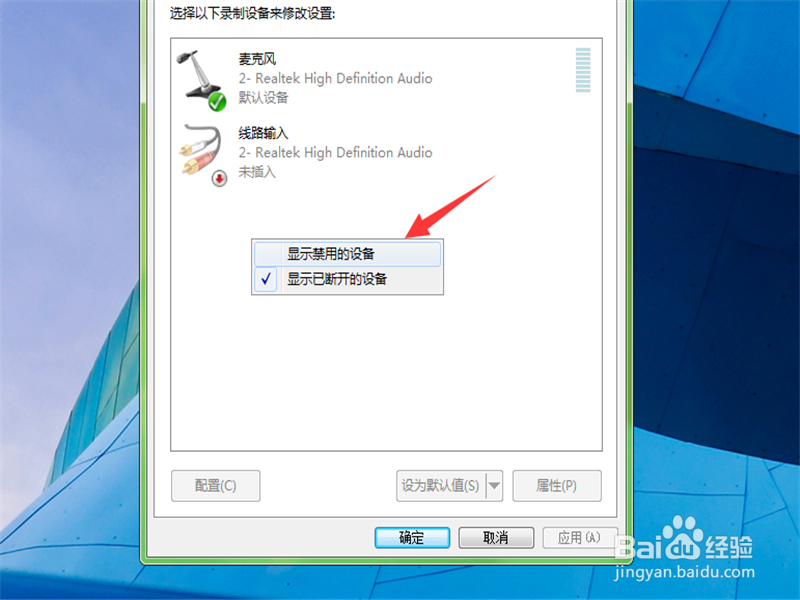 在弹出的子菜单中,点击一下显示禁用的设备。