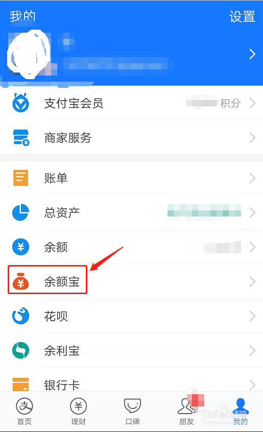 第三步,进入我的菜单选项,选择页面中的余额宝选项;