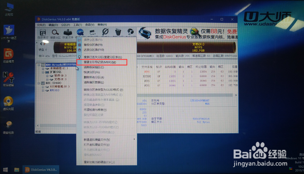 第五步:继续点击左边磁盘名字--->右键--->重建主引吐廊盆导记录--->确定