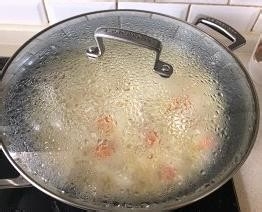 然后倒入清水,加盖,转大火,焖4分50秒。