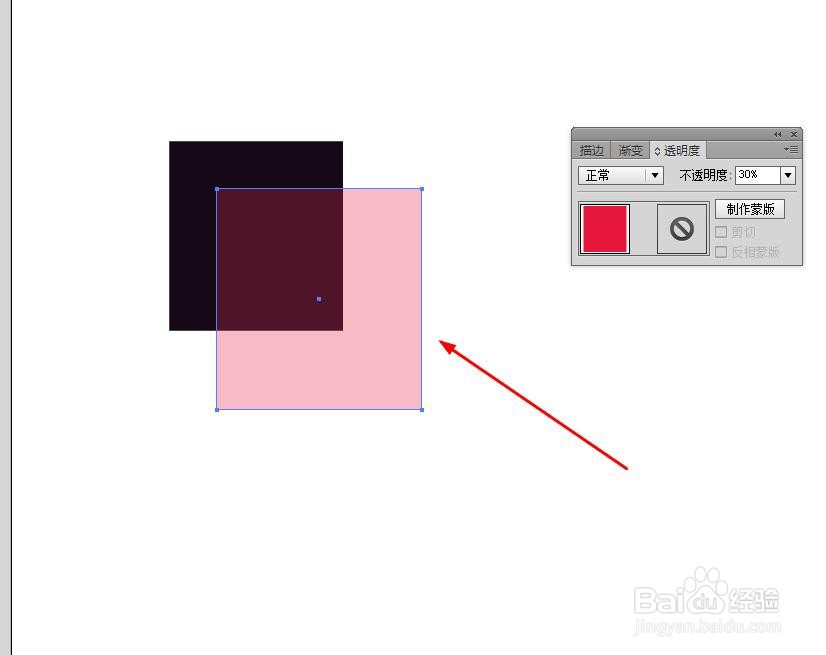 选中上方的图形对象,点击窗口右上角的不透明度百分比参数,根据需要设置,也可以直接输入百分比。