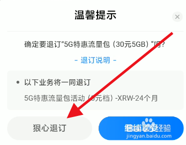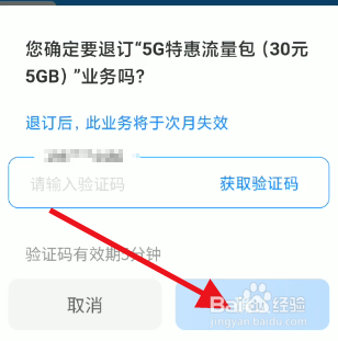 弹出窗口输入验证码点击确认选项即可退订该业务、
