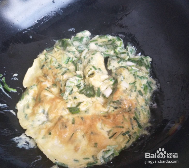 等鸡蛋与荞菜煎好了,加入生抽均匀后即可出锅。