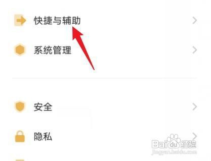 方法一、打开手机<设置>页面,点击“快捷与辅助”