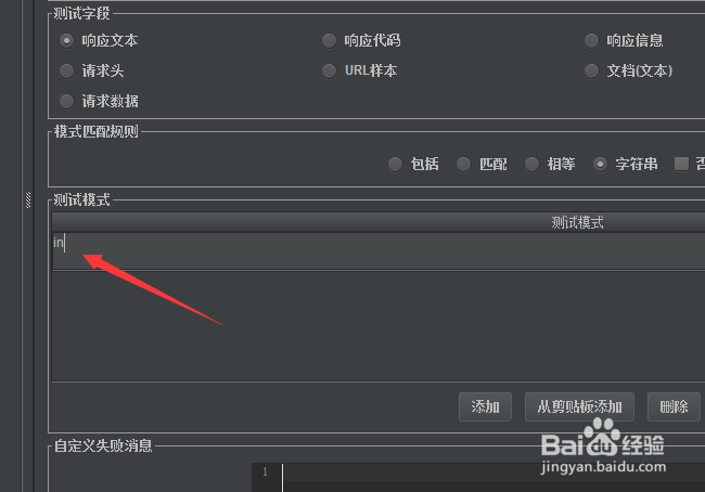 然后在测试模式中输入相关的断言的内容