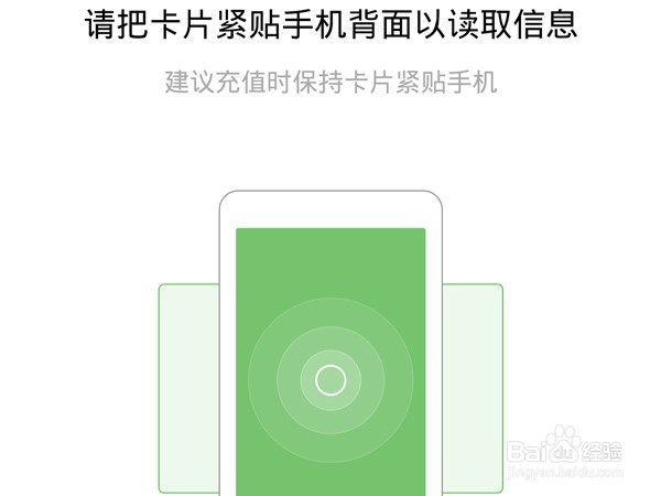 5、把公交卡贴在手机背面的nfc读卡区域中,输入想要充值的金额就可以了。