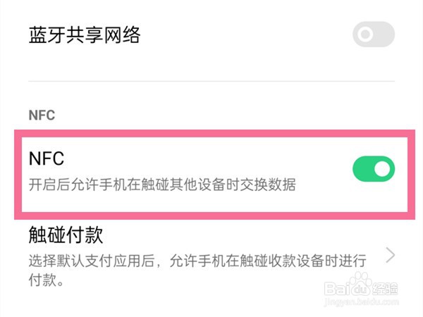 2、将NFC功能开启,设置默认的付款应用,把手机背面触碰到带有付款标识的设备中就可以付款了。