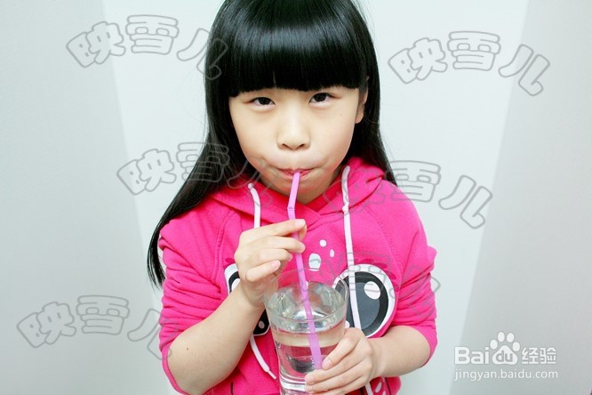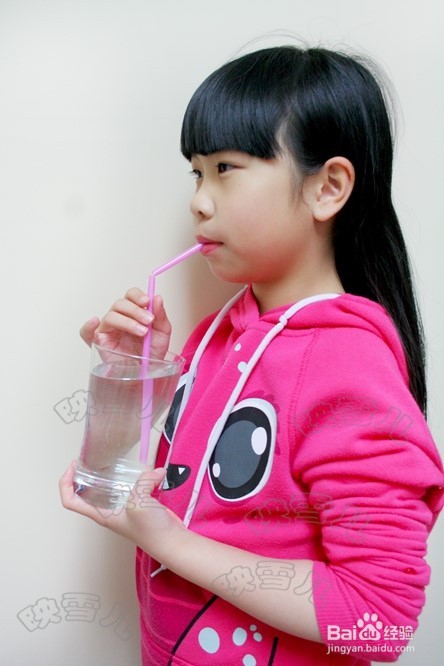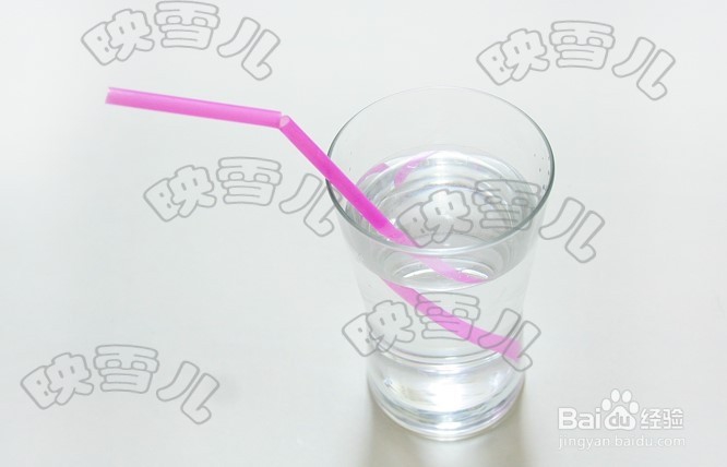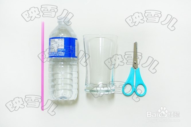 准备一根长吸管、一把剪刀、玻璃杯、一瓶水