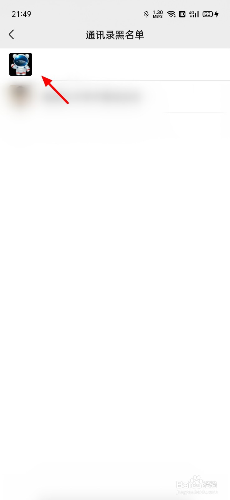 在通讯录黑名单页面,点击 好友;