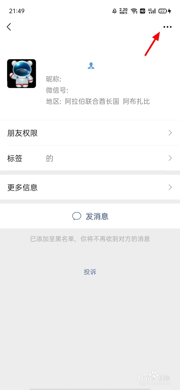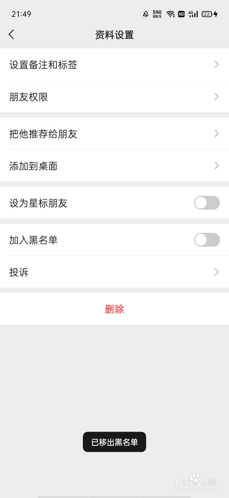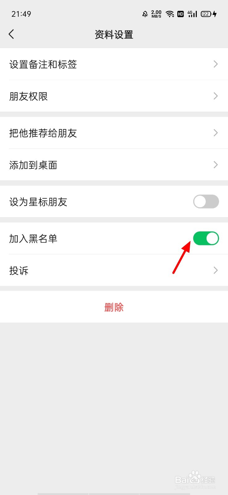 在资料设置页面,关闭 加入黑名单;