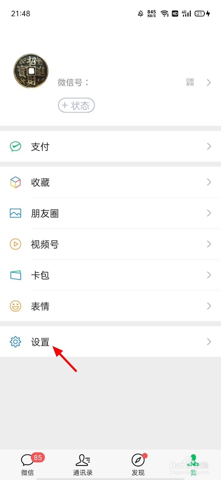 在我页面,点击 设置;