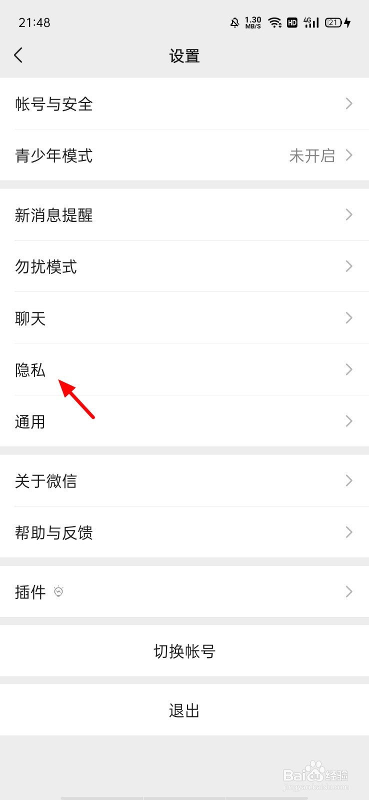 在设置页面,点击 隐私;