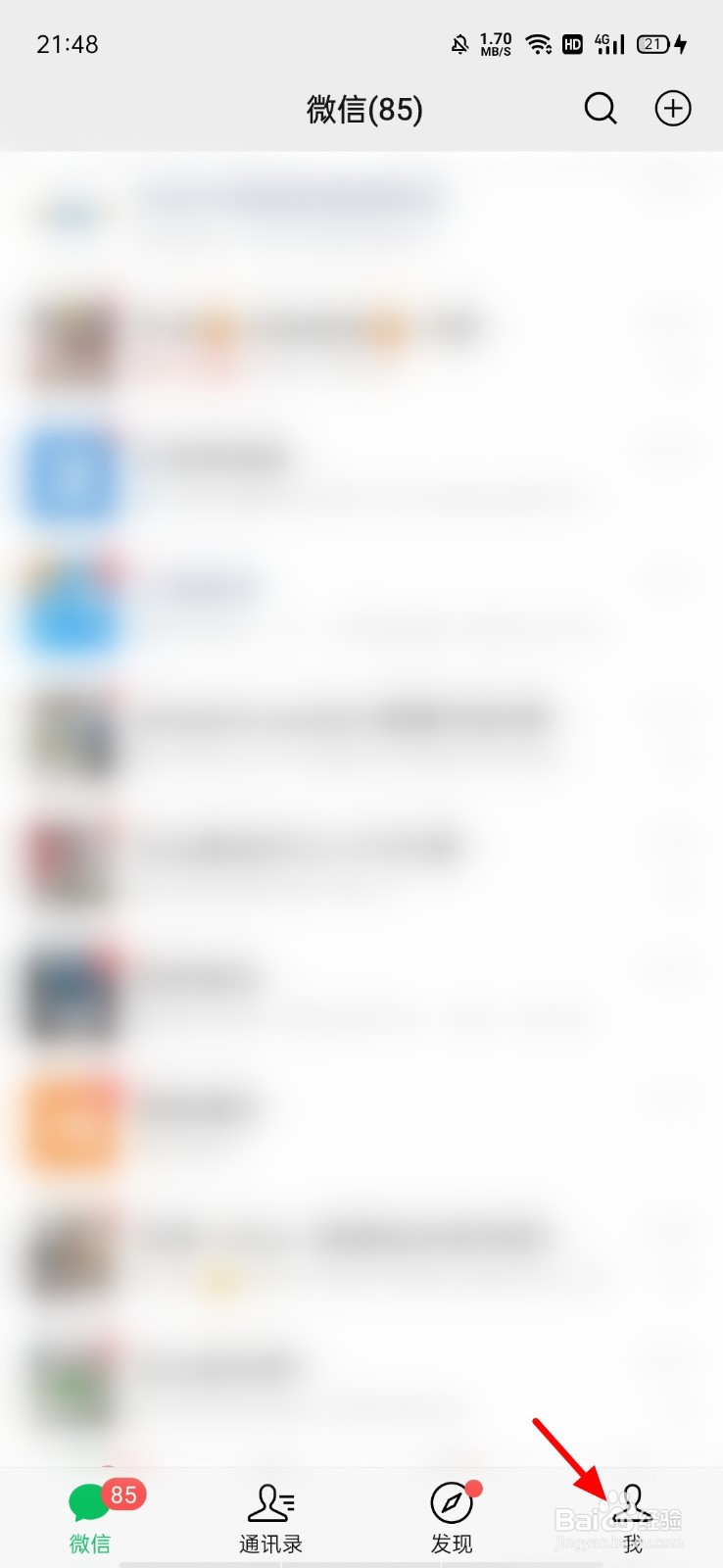 在微信首页页面,点击 我;