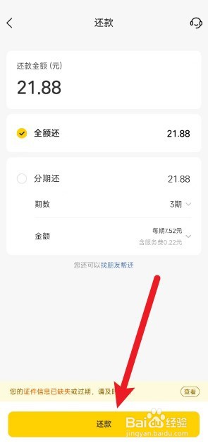 进入还款界面,输入还款金额,点击页面底部【还款】即可。
