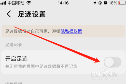 最后,在足迹设置页面,找到开启足迹,点击打开就行了