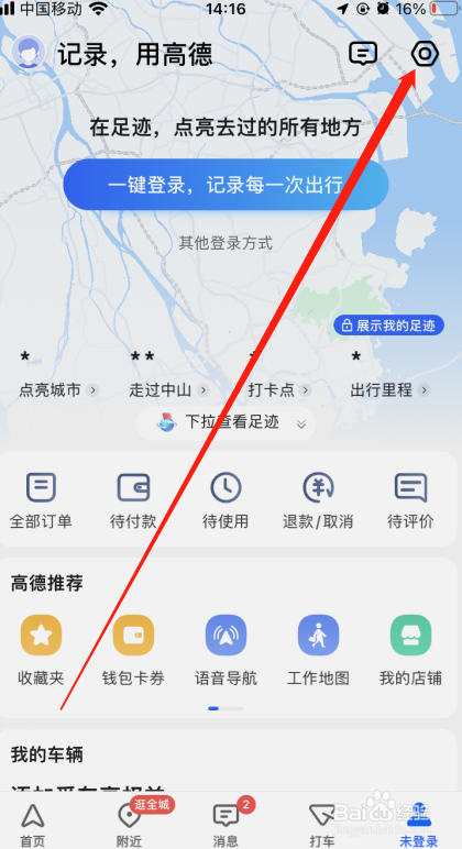 打开手机高德地图app,然后点击右上角的设置按钮,