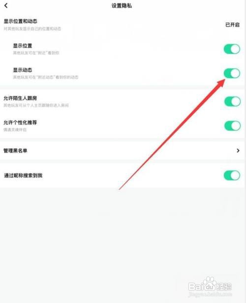 第五步关闭显示位置动态,附近的玩友就看不到你的动态