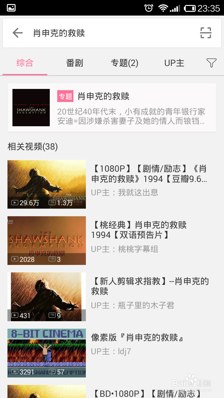 搜索到的有关《肖申克的救赎》电影有很多,有的是片段,我们需要看完整的,选择第一个《肖申克的救赎》。