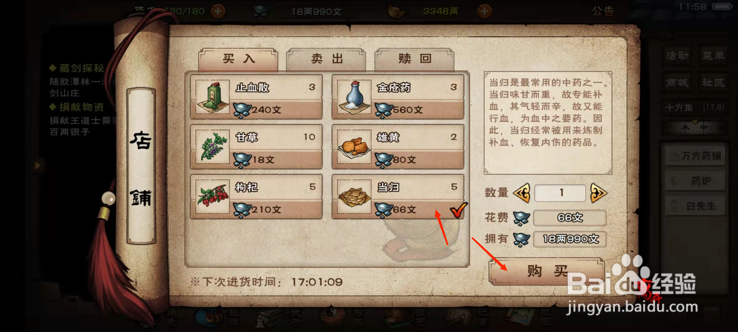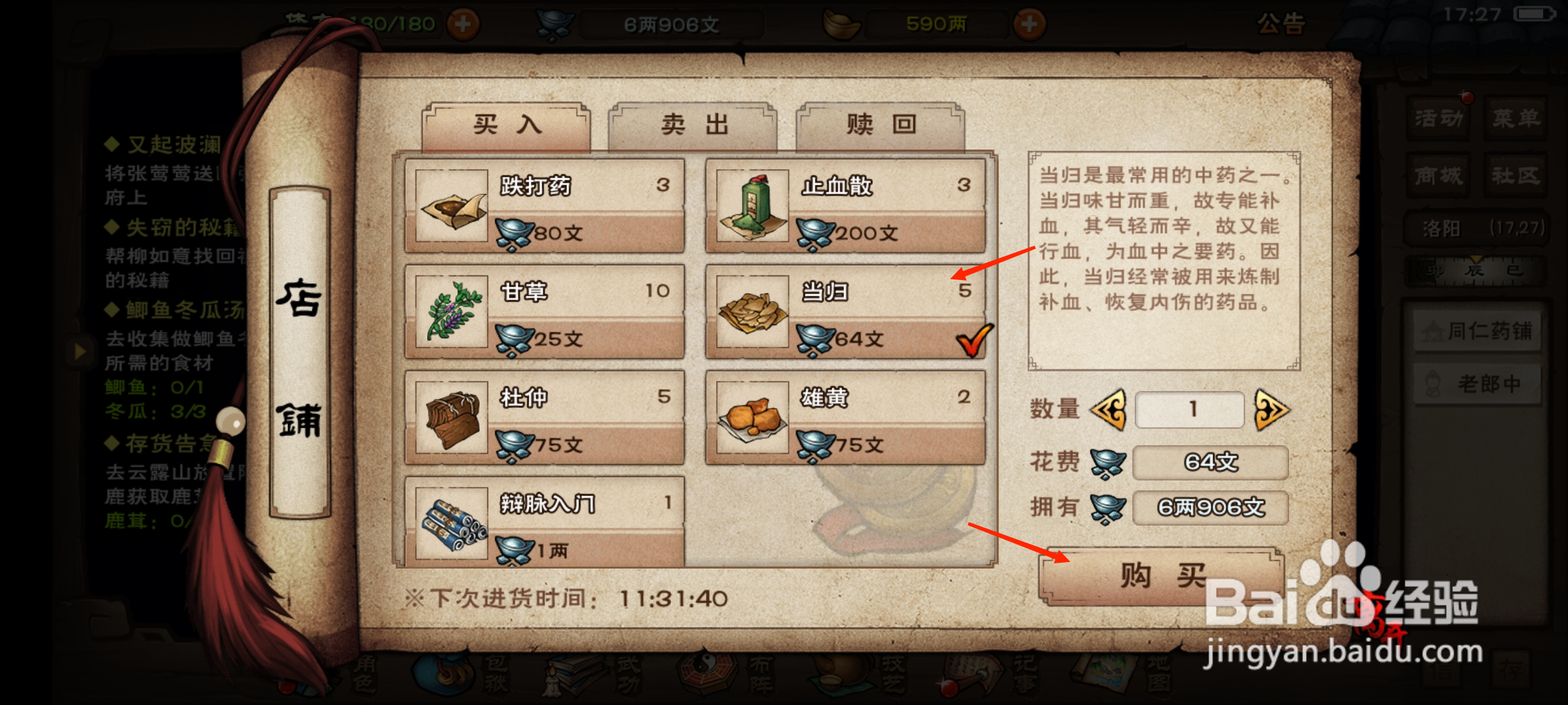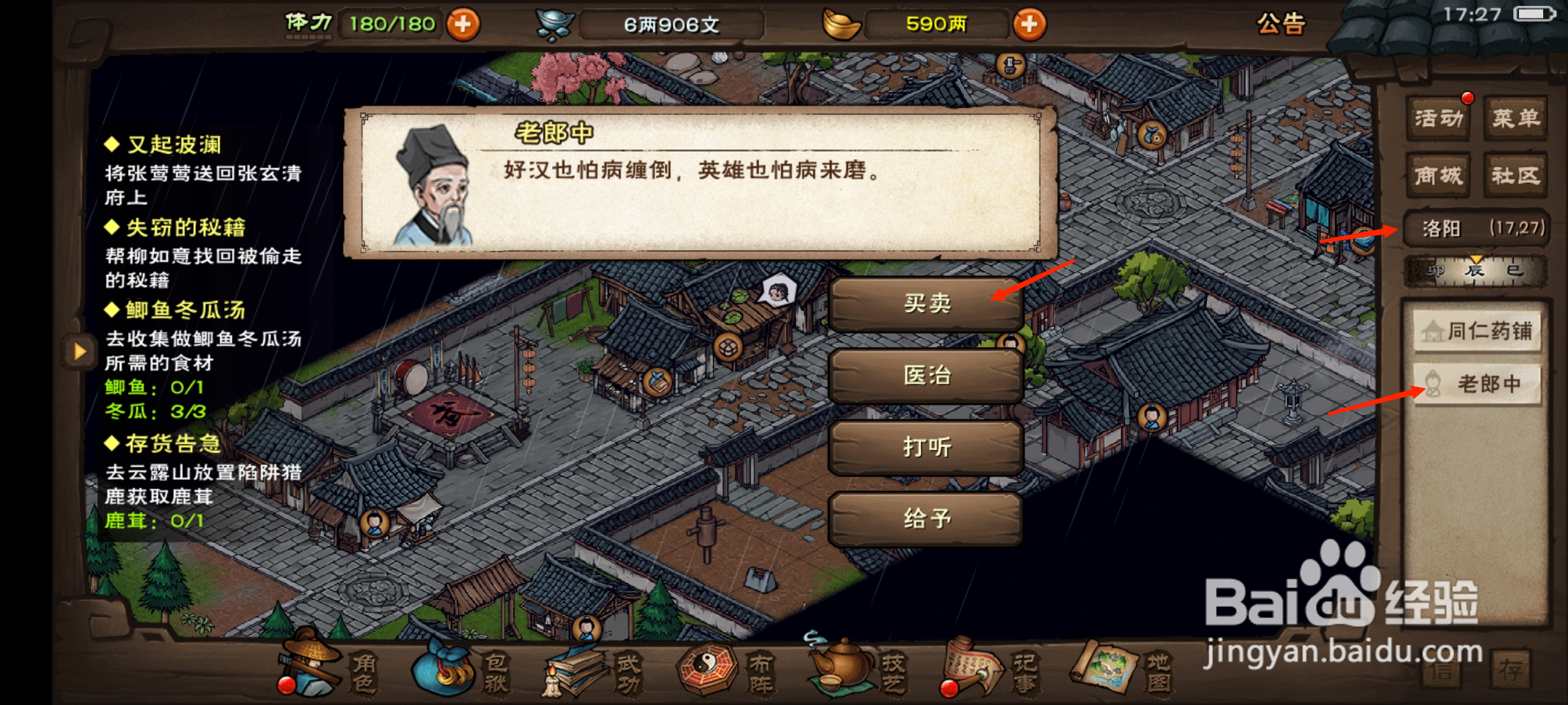 在手游烟雨江湖中,玩家可以前往洛阳的老郎中处,或是十方集的白先生处购买获得当归,具体步骤如下: