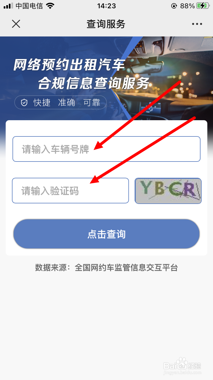 这样会进入【查询服务】的页面,输入需要查询的【车辆号牌】和【验证码】。
