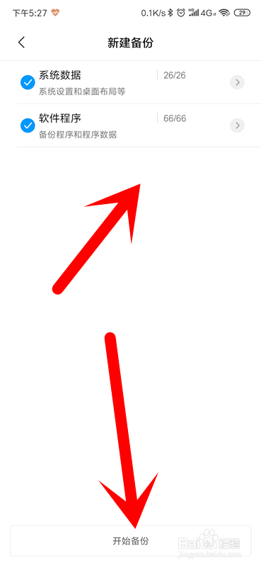 选择你要备份的系统资料,点击开始备份即可。