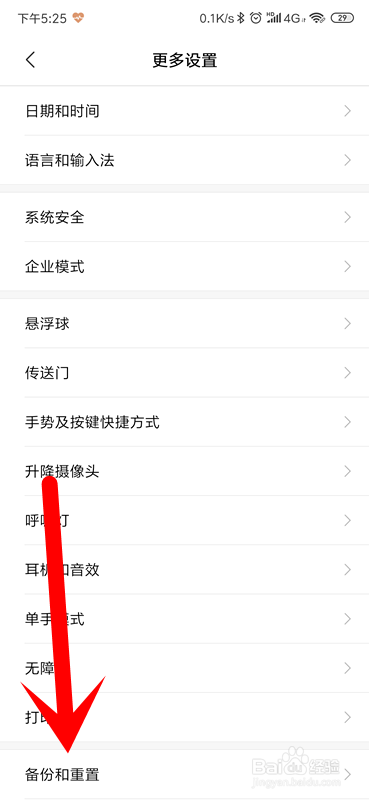 我们在更多设置里面找到备份和重置。