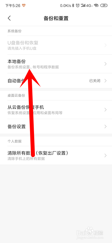 我们找到本地备份,点击本地备份。