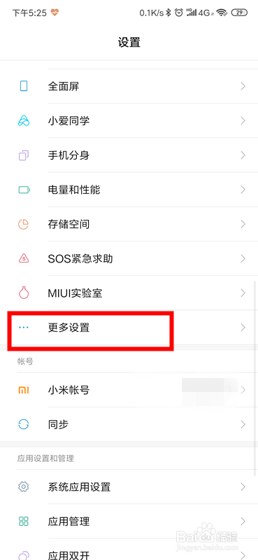 我们在设置界面,点击下方的更多设置。