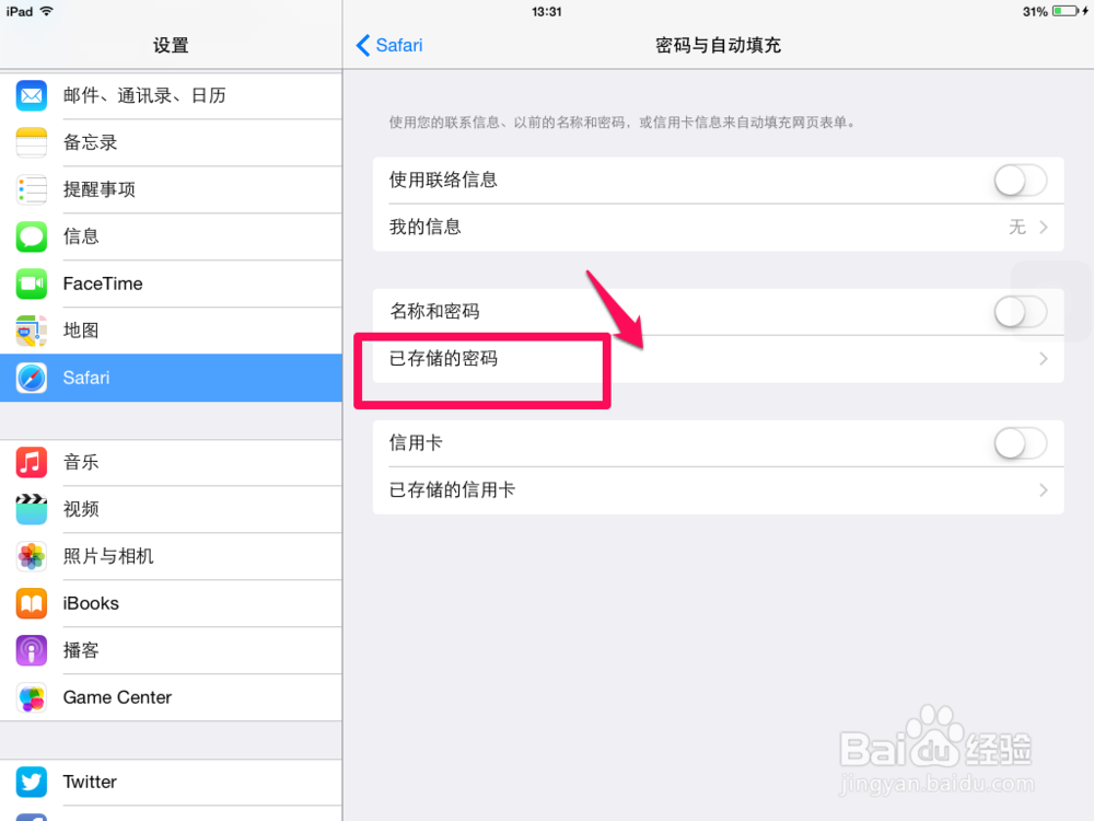 苹果ipad查看/删除Safari保存的密码,苹果ipad怎么查看Safari保存的密码,自己有时候密码忘记了可以在这里进行查看呢。